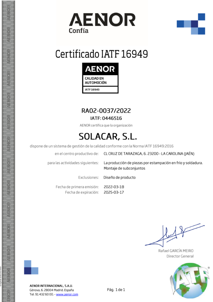 En el año 2022 se obtuvo la certificación IATF 16949 para dar un mejor servicio a nuestros clientes de automoción.